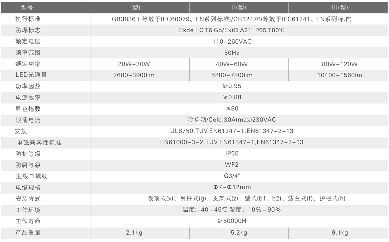 广泛用于石油开采、炼油、化工、军工等危险环境及海洋石油平台、油轮等场所作普通照明和作业照明之用;