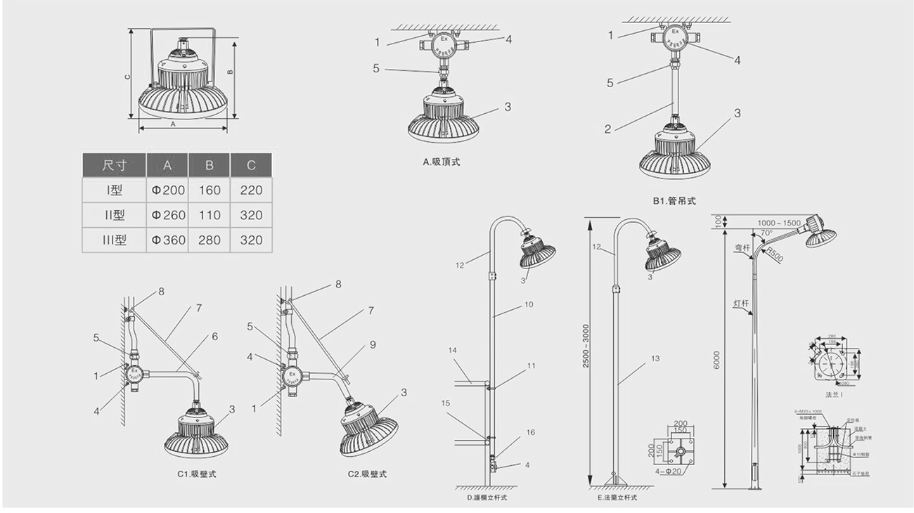 光源腔、电源腔、接线腔三腔分离结构,采用间接引入方式,设有独立的接线腔;